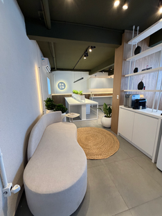 Projeto do escritório da Agência Rizo, localizado frente mar na Praia Brava, em Itajaí, pensado para unir funcionalidade, conforto e identidade contemporânea. A composição em tons claros, aliada ao contraste do amadeirado, cria um ambiente leve, elegante e acolhedor, sem perder o caráter profissional. Com layout inteligente, o espaço foi projetado para acomodar até 10 pessoas trabalhando com conforto, valorizando a integração, a produtividade incentivada pela luz natural e a vista privilegiada para o mar.
